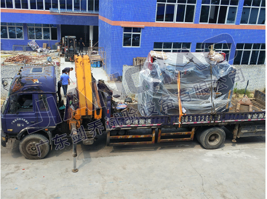 注:(圖為廣東劍喬引進數控折彎機現場卸貨圖)